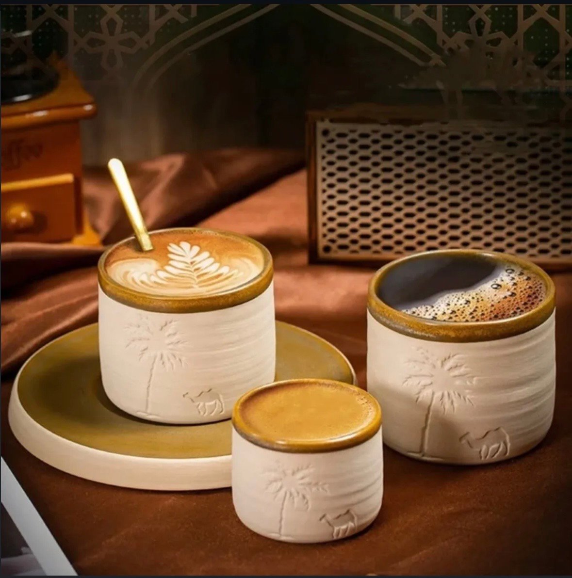 أكواب القهوة السيراميك الجديدة بتصميمها العربي تجمع بين دفء التراث وأناقة التصميم العصري،مثالية لكل لقاء، لكل قصة، لكل رشفة.